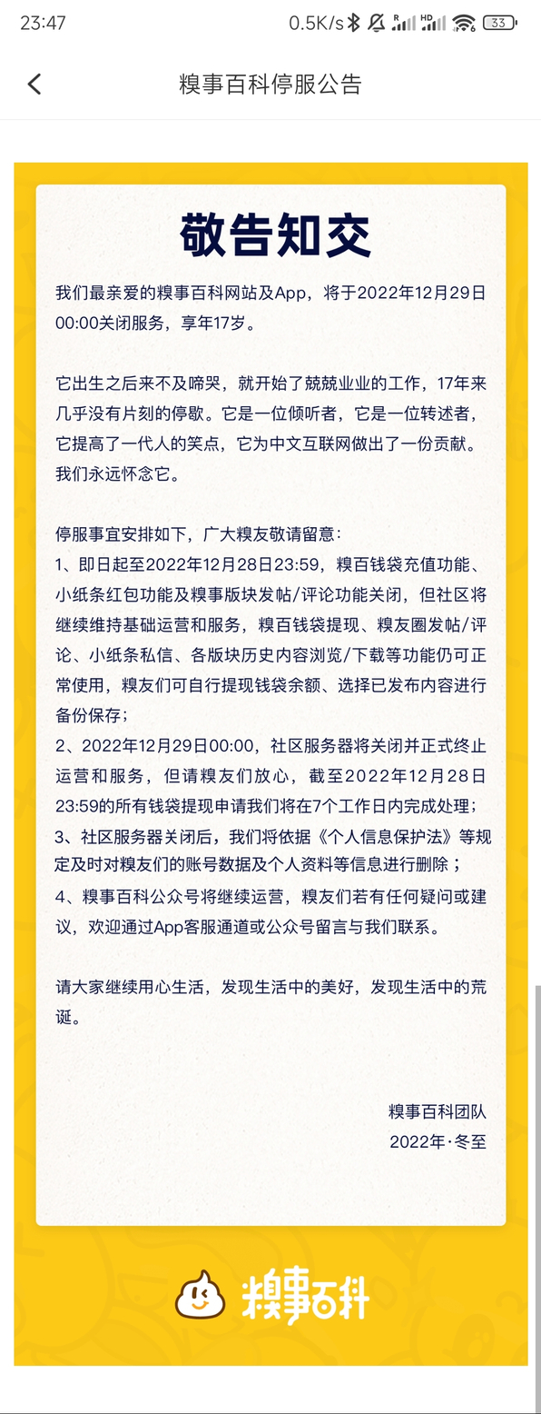 手机里还登录着糗百,账号11年糗龄,糗百ID : 285453. 又一件事物从世界里消失了,似乎它从来没有来过。