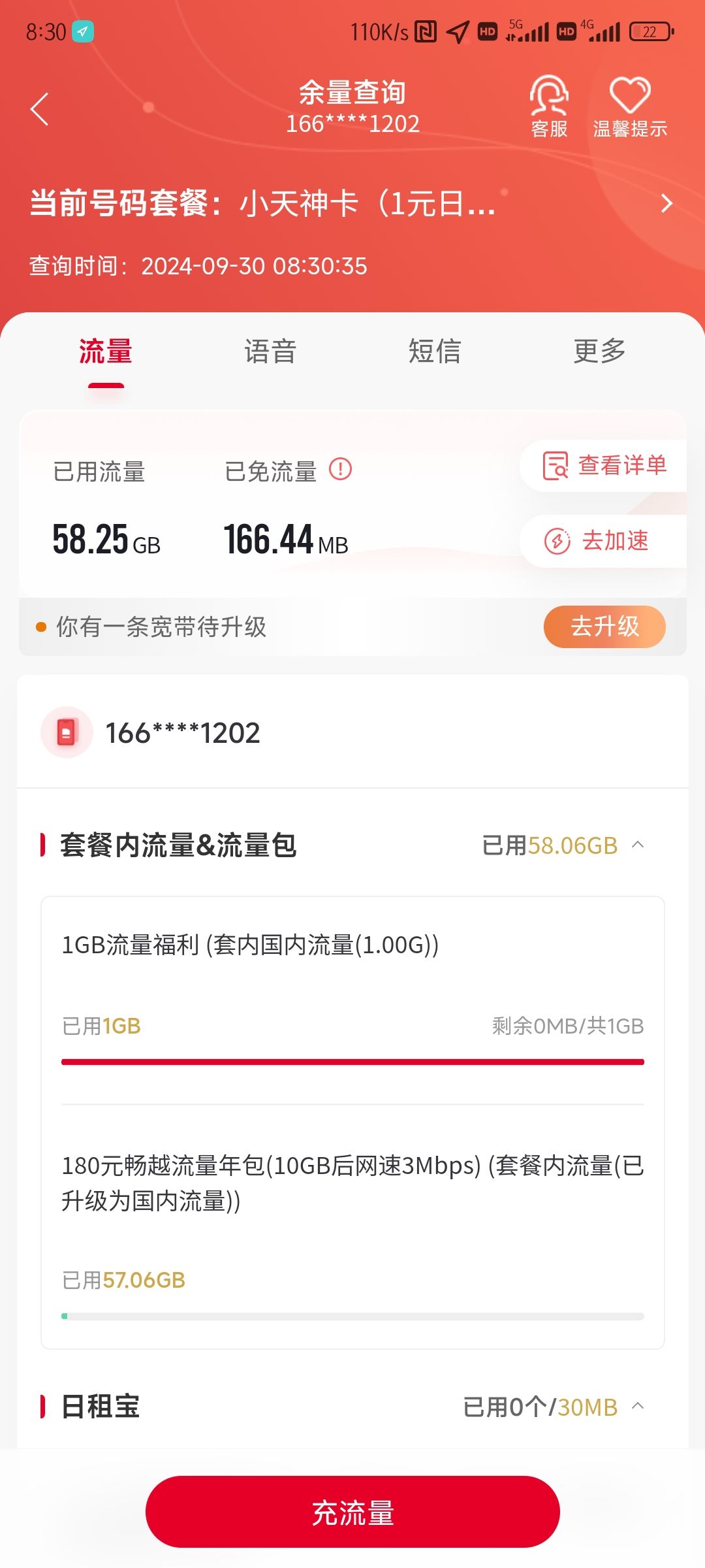 166XXXXXXXX 同18年左右互联网卡时期因为新出的166号段而办理,绝对的一手号码,当时办理了两个,因为实在太多号卡而注销了另外一个,如若不是后面巧合在只有半天的时间窗口期办理了180元/年10G每月高速流量剩余不限量的流量年包,或许这个号码也会被注销掉。总之因为这个套餐保留了这个号码,但前面大部分时间都闲置没怎么用。最近终于用在了4GCPE路由器上发光发热。