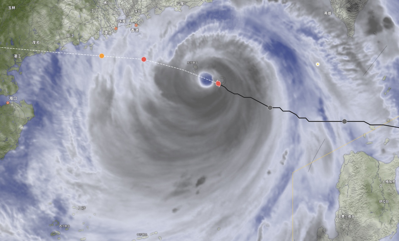 台风云好似一个萌萌哒小动物,反差的是它其实是一个中心风速200公里每小时的巨大怪兽。